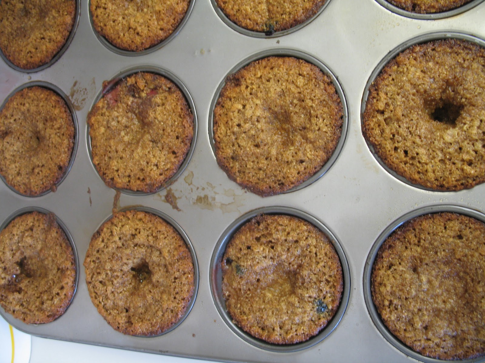 -In a muffin or cup cake pan, add spray oil, spoon the muffin mix 3/4 of each cup